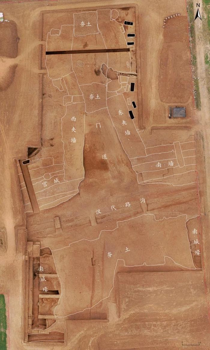清理发掘的大城东门由城台、外瓮城、南北门道、门塾、门内道路和建筑群等部分构成。城台南北长94.6米,规模宏大,结构完备,城内有南北两组建筑院落,形制规整,建造考究,是研究西周建筑及其礼制的珍贵资料。